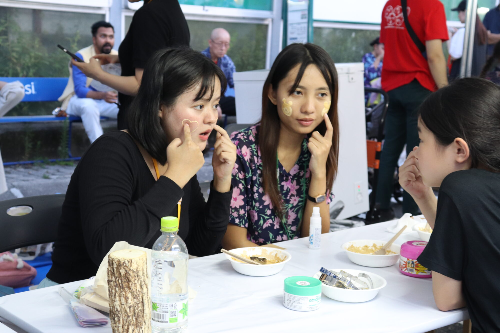当日は、想像以上に多くの方がブースに足を運んでくださり、「これは何ですか?」「どんな意味があるのですか?」と、タナカやミャンマーの文化について多くのご質問をいただきました。